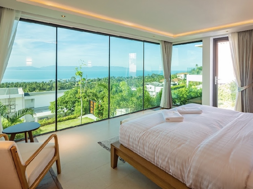Dans le nord de l'île de Koh Samui, dans le quartier très prisé de bang por à 3 minutes de sa superbe plage sauvage, 5 minutes du village de Maenam et 15 minutes du village de fisherman. Quartier calme, résidentiel mais central. Vous trouverez à vendre cette somptueuse villa posée sur un terrain de 625 m2, offrant une vue mer et sur les îles, exceptionnelle. Facile d'accès cette villa de luxe aux finitions et équipements soignés est vendue en pleine propriété Chanote entièrement meublée. Elle dispose de 4 suites avec salle de bain et dressing, d'une pièce de vie aux volumes appréciables, avec accès à l'espace baignade avec une piscine à débordement au sel de 37 m2. La villa offre une surface habitable de 303m2 et des surfaces extérieures de 189m2. Luxe, calme, volupté sont les maître mots pour cette villa exceptionnelle. Seule une visite vous permettra de comprendre et ressentir l'atmosphère qu'offre cette sublime propriété.