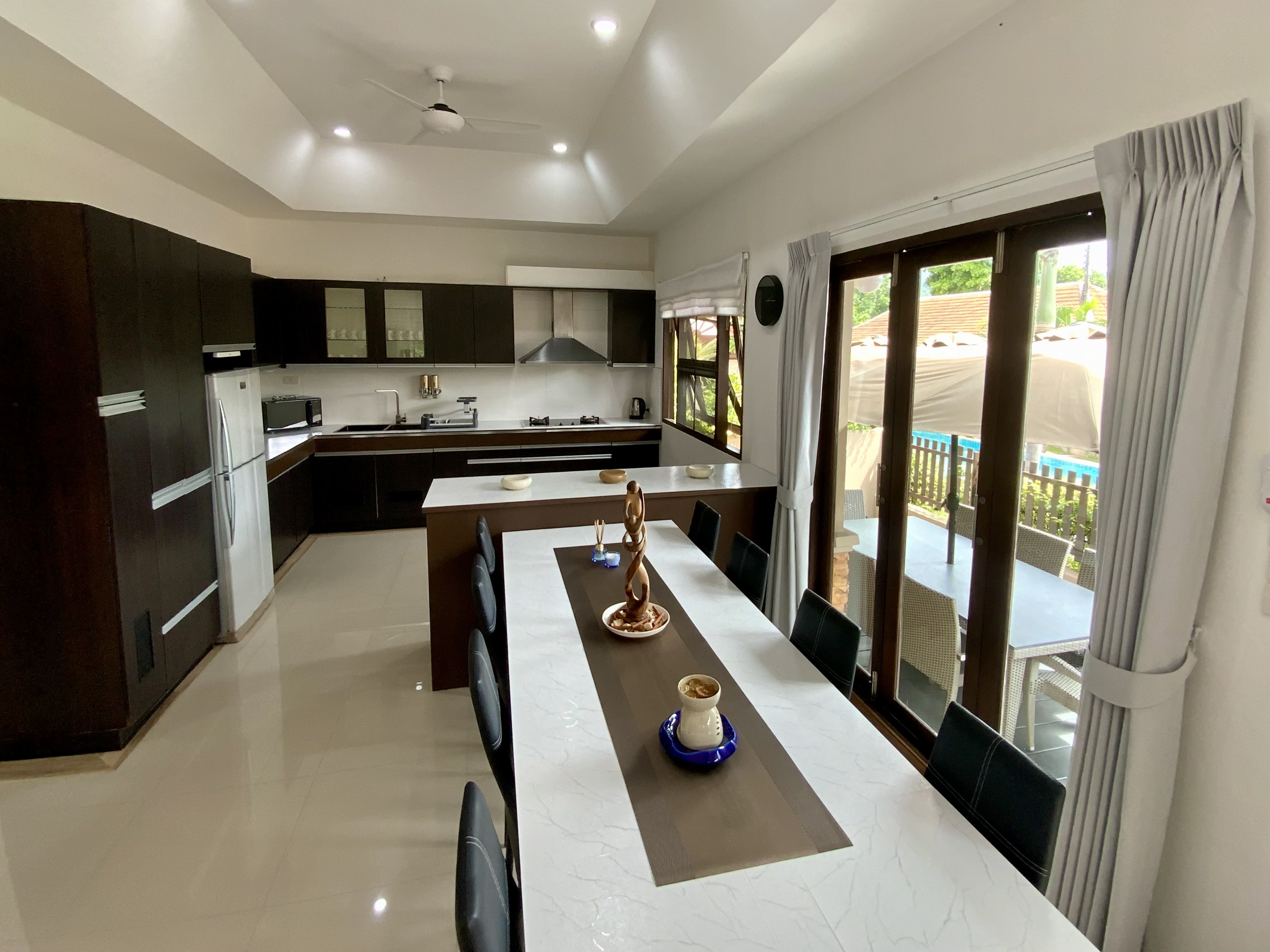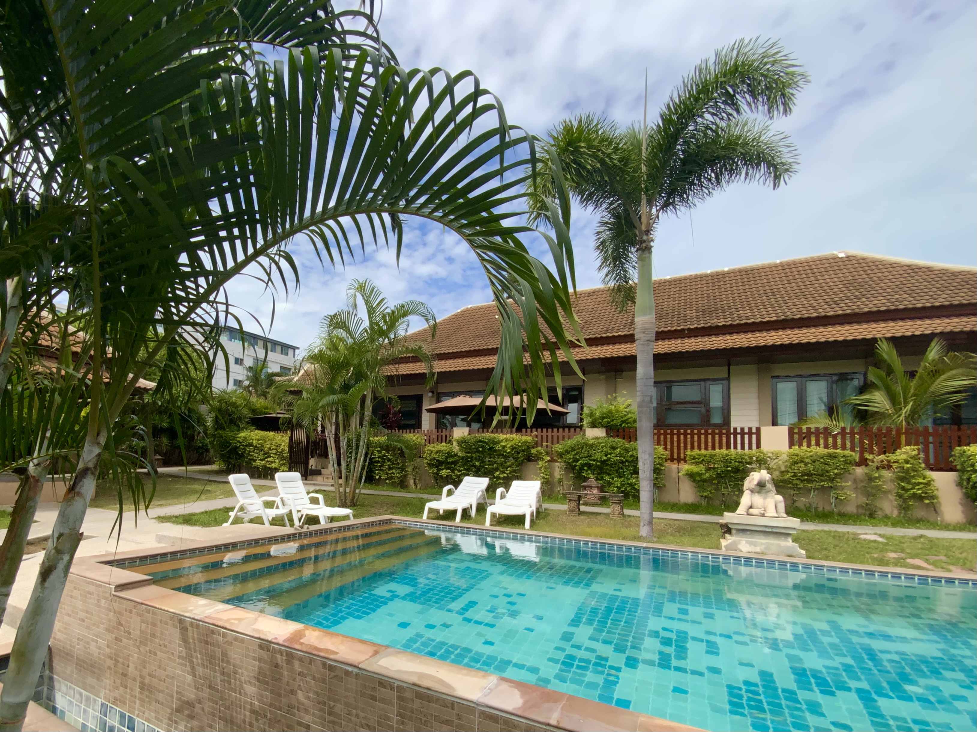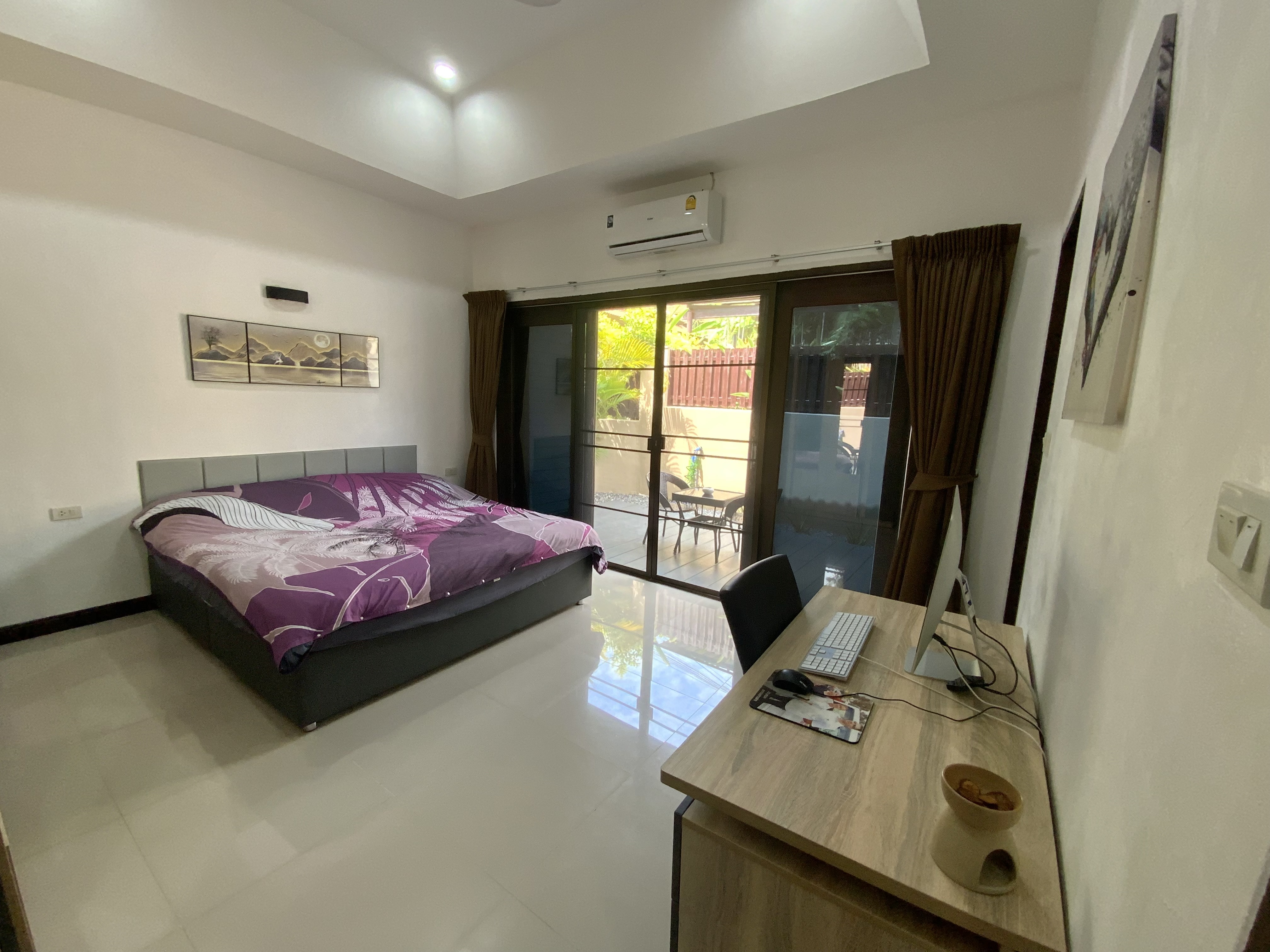 Au coeur de l'île de Koh Samui, à pied du village de Fisherman, dans le quartier recherché de Bophut. Proche de toutes les commodités et de tous les autres centres d'intérêt de l'île, les écoles internationales notamment. 15 minutes de l'aéroport, 10 minutes de la plage de Chaweng et de ses bars et restaurants, 10 minutes en voiture des plus belles plages de l'île. Cette jolie maison fait partie d’une très belle résidence, très bien entretenue, avec 2 magnifiques piscines, des jardins très bien entretenus, un service de gardiennage et de conciergerie sur demande. Les charges annuelles imputables à la villa pour ces services s'élèvent à 40.000 THB. La villa se compose d'un grand salon/salle à manger et cuisine ouverte d'environ 43m2, une suite parentale d'environ 22m2 avec placard et salle de bain et une chambre spacieuse d'environ 15m2 dispose d'une petite salle de bain accessible par le salon. Les extérieurs très bien aménagés contiennent de nombreuses petites terrasses, une pour chaque chambre notamment et des espaces ombragés évoluant dans la journée offrant calme et fraîcheur, ainsi que la buanderie. Pour une surface d'environ 80m2. La maison donne sur la piscine et le jardin de la résidence, c'est une maison de plein pied mitoyenne avec la maison voisine en miroir. Maison habitée en résidence principale, elle est très bien entretenue et très bien équipée. Vendue en pleine propriété avec la société thaïe et vendue meublée et équipée. Électricité et eau gouvernementale. Maison de 2007 entièrement rénovée en 2024. Produit facile à louer et très agréable à habiter.